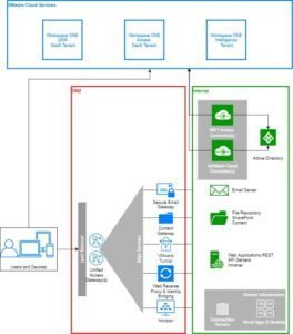 The illustration below shows a simplified Workspace ONE software-as-a-service-SaaS-based architecture: