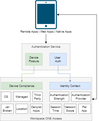 Workspace ONE UEM (formerly known as AirWatch) provides a comprehensive enterprise-mobility platform that delivers simplified access to enterprise applications, secures corporate data, and allows mobile productivity. It also works with the public application stores to handle the provisioning of native mobile applications to mobile devices. Workspace ONE UEM provides compliance-checking tools to ensure the remote-access devices meet corporate security standards. Workspace ONE UEM requires an Airwatch Cloud Connector within your internal network.