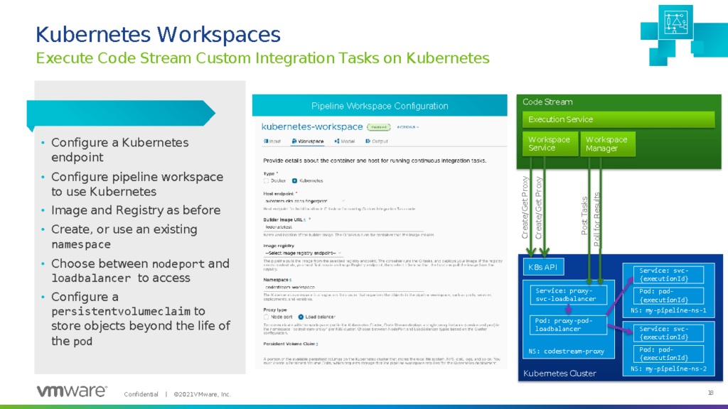 What we did see demonstrated were the dynamic inputs for blueprints, Action Based Extensibility (ABX)-supported custom resources, and K8s for CI configuration in Code Stream. The dynamic-inputs solution allows you to use vRealize Orchestrator (vRO) to pull data for an input, instead having to have that knowledge and inserting it as a user. Normally, this will auto-populate a dropdown or a search field for the user to pick. This function already exists within Custom Forms inside of Service Broker (extension of vRA), but this solution will hardcode it with the blueprint itself. ABX action-backed custom resources allows users to build custom resources, like users, ports, etc. and be able to place them in a blueprint. This also brings the ability to create day-two actions for those custom resources. This move adds more functionality for those looking for function as a service solution, outside of vRO — though it doesn’t really add new capabilities. (Instead, it extends the customization of those functions.) Finally, on K8s for CI integration with Code Stream: currently this is only available with a Docker host, and according to VMware, “Many customers do not want to use Docker.” Instead of building a Docker host, you would have to build an external K8s cluster to build your CI pod for running custom scripts and configurations. Code Stream custom integration is pretty neat, as it ties Tanzu into the solution nicely.