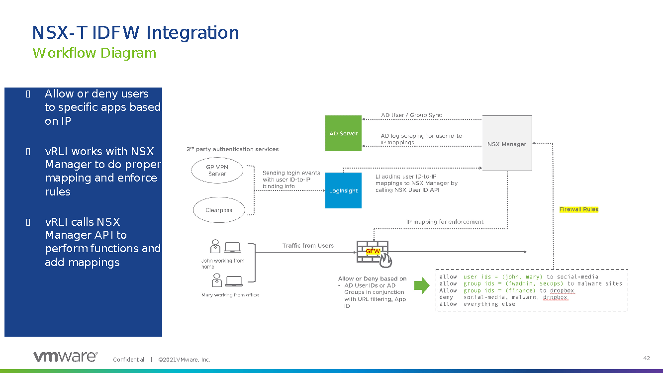 vRealize Log insight at its core is a logging aggregator that brings multiple logs into a central location and grants the user the power to parse through the logs to find troubleshooting issues and address them. However, it’s not always the easiest way to work. Some of the datapoints will not be easy to consume visually. One such integration is between NSX-T and Log insight. Now NSX-T has a function called “Identity Firewall” that will block users from accessing resources they don’t need to access. These logs in vRLI would be difficult to find, as they would give you information about an IP address and not the user.