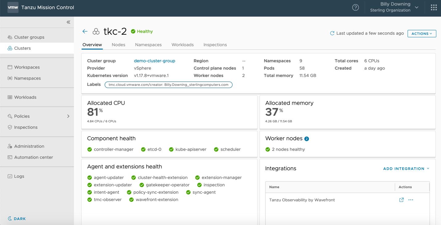 Figure 6: Tanzu Mission Control cluster health dashboard