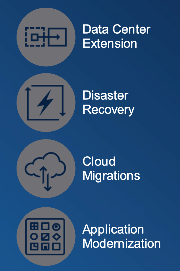 - Cloud Migrations – Several organizations would rather exit the data center management business altogether but would like to retain their existing infrastructure talent. VMC provides these customers the ability to easily lift-and-shift workloads to a common platform while retaining a familiar management experience and evacuating their existing datacenter.