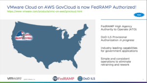 This FedRamped certification is a huge deal for VMware, verifying that they are able to control data per government standards. VMC on AWS in the eastern GovCloud region will be released, hopefully, in Q4 2021 or Q1 2022.