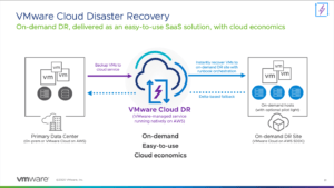 VCDR is a great disaster-recovery solution. For a refresher, VCDR pulls data from your local data center and stores it within the VMware cloud solution. This acts as storage for your data that can then be utilized for recovery in the event of a disaster. A couple of things to keep in mind with this solution: VCDR is only recovery to VMC on AWS.