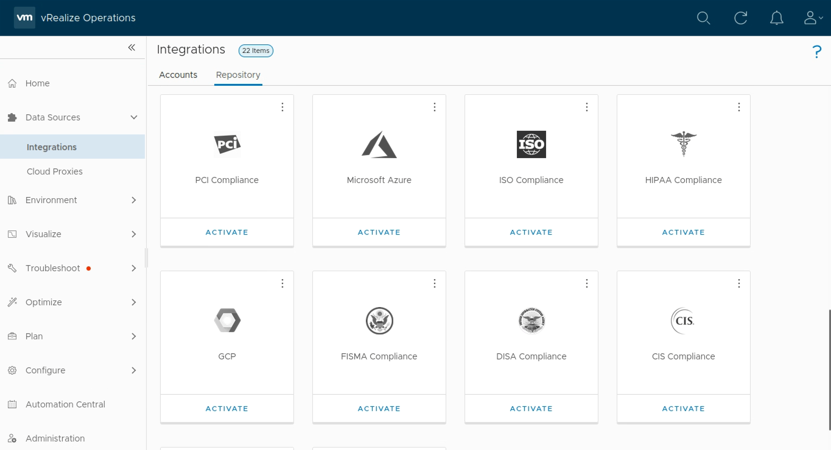 The toolsets here are VMware vRealize SaltStack Secops, vRealize Operations (vROPS). Using vROPS as an example: Once endpoints have been created and scanned in the environment (VMware objects such as hosts/virtual machines and containers), compliance settings can be added to scan those objects and to indicate the status of compliance standards — what is being kept and what is being broken.