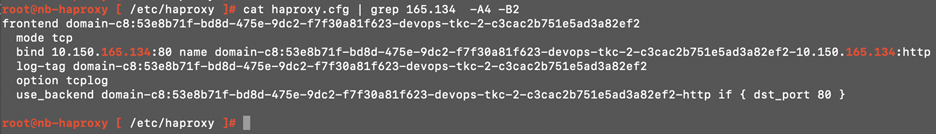 figure 9: Services built within the HAProxy VM by the Tanzu Kubernetes Cluster