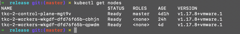 figure 2: Kubectl view of the Tanzu Kubernetes Cluster